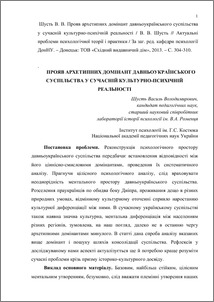 - Шусть, Василь Володимирович (orcid.org/0000-0002-0094-1121) (2013) Прояв архетипних домінант давньоукраїнського суспільства у сучасній культурно-психічній реальності In: Актуальні проблеми психологічної теорії і практики , 1 (12). ТОВ «Східний видавничий дім», м. Донецьк, Україна, pp. 304-310. ISBN 978-966-317-179-1