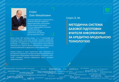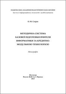 Спірін, О.М. (orcid.org/0000-0002-9594-6602) (2013) Methodical system of informatics teacher basic training on credit-modular technology . Вид-во ЖДУ ім. І.Франка, м. Житомир, Україна. ISBN 978-966-485-139-5