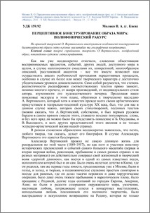 На прикладі творчості О. Вертинського аналізуються особливості конструювання багатомірності образу світу в різних масштабах та географічних координатах.