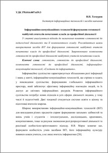- Татауров, Віктор Петрович (2013) Інформаційно-комунікаційних технологій формування готовності майбутніх вчителів початкових класів до професійної діяльності Педагогіка і психологія професійної освіти (1). pp. 65-77.