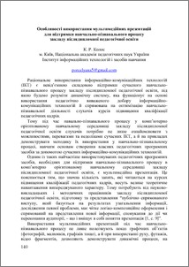 У дослідженні, на основі програми ProShowProduser, висвітлено особливості навчання слухачів курсів підвищення кваліфікації педагогічних кадрів створенню мультимедійної презентації.