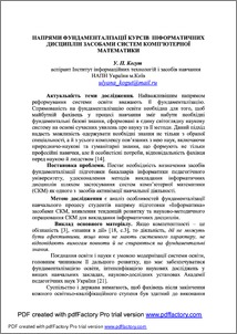 Визначено засоби фундаменталізації підготовки бакалаврів інформатики педагогічного університету, удосконалення методів викладання інформатичних дисциплін шляхом застосування систем комп’ютерної математики (СКМ) як одного з засобів активізації навчальної діяльності.