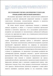 Исследование представляет собой анализ психологических особенностей восприятия студентами произведений современной живописи и содержит теоретическое обоснование, методологические принципы и результаты экспериментального исследования данной проблемы.