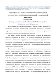 Исследование представляет собой анализ психологических особенностей восприятия студентами произведений современной живописи и содержит теоретическое обоснование, методологические принципы и результаты экспериментального исследования данной проблемы.
