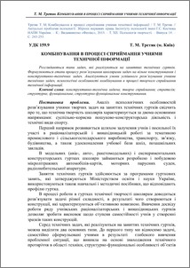 Розглядаються типи задач, які реалізуються на заняттях технічних гуртків. Формулюються етапи процесу розв’язування школярами задач на вільне конструювання і конструктивно-технічних задач. Аналізуються умови успішного розв’язування учнями технічних задач, психологічні особливості комбінування в процесі творчого сприймання технічної інформації.