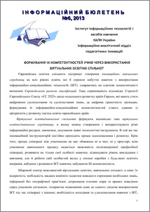 - Малицька, І.Д. (2013) Бюлетень №6-2013 Формування ІК-компетентностей учнів через використання віртуальних освітніх спільнот Інститут інформаційних технологій і засобів навчання НАПН України, м.Київ, Україна.