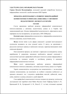 - Сороко, Н.В. (2009) Problem of forming and development of information competence of teacher-philologist in word pedagogical experience and in Ukraine Інформаційні технології і засоби навчання, 4 (12). ISSN 2076-8184