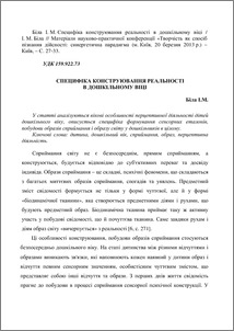- Біла, І.М. (2013) Cпецифіка конструювання реальності в дошкільному віці Матеріали науково-практичної конференції «Творчість як спосіб пізнання дійсності: синергетична парадигма (м. Київ, 20 березня 2013 р.) – Київ,. pp. 27-33.
