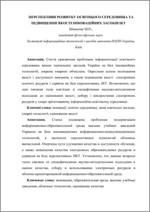 - Шишкіна, М.П. (2013) Prospects for the development of the educational environment and innovative ICT quality increase Humanitarian Bulletinof the Perejaslav-Khmelnitsky State Pedagogical University named after Hryhoriy Skovoroda, 4(46) (31(1)). pp. 440-446.