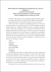 - Лотоцька, Ю.М. (2014) The psychological phenomenon of «the death vallay of past experience» Science and education a new dimencion. pp. 184-189. ISSN 2308-5258
