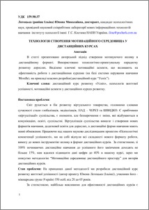 В статті презентовано авторський підхід створення мотивуючого впливу в дистанційному форматі. Використовано технологічно-проектувальну парадигму розвитку дорослих. Виділено ключові мотиваційні аспекти, що впливають на ефективність роботи з дистанційними курсами (на базі системи керування навчання Moodle), на прикладі власних розробок(дистанційний курс “Успіх”).