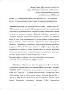 - Дементієвська, Н.П. (2010) Implementation of ICT-oriented cource for pre profilization preparing of secondary students .