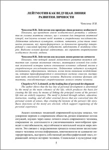- Чепелєва, Н.В. (2011) Leitmotif, as the leading line of personal development Актуальні проблеми психології: Збірник наукових праць Інституту психології імені Г.С. Костюка НАПН України, 7 (2). pp. 5-14. ISSN 2072-4772