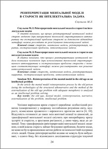 Reinterpretation of the mental model in the old age as an intellectual problem (deposited 04 Feb 2014 20:04)