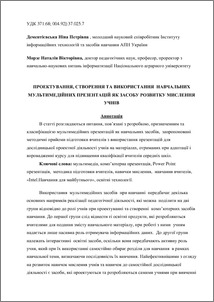 - Дементієвська, Н.П. and Морзе, Н.В. (2006) Multimedia presentations as tools for developing of student thinking skills Informational Technology and Learning Tools, 1 (2). ISSN 2076-8184