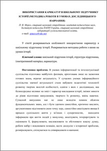 У статті розкриваються особливості використання карикатур в шкільному підручнику історії. Розкривається методика роботи з ними на уроках історії.