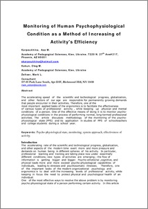 | Keywords: | Psycho-physiological state, monitoring, system approach, effectiveness of activity. |
