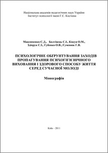 У монографії викладені теоретико-методологічні засади пропагування психогігієнічного виховання і здорового способу життя. Визначено психологічні засади пропагування психогігієнічного виховання і здорового способу життя серед молоді. Обґрунтовано методологію психологічного обґрунтування заходів пропагування психогігієнічного виховання і здорового способу життя серед молоді. Розроблено методичні рекомендації щодо ефективного застосування заходів, спрямованих на пропагування психогігієнічного виховання і здорового спо¬собу життя серед сучасної молоді. На цій основі створено концепцію пропагування психогігієнічного виховання і здорового способу життя серед сучасної молоді. Монографія може становити інтерес для шкільних та вузівських психологів, вчителів, викладачів, вихователів, керівників освітніх організацій.
