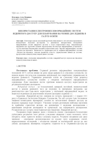 The use of open access electronic information systems for pedagogical researches planning in education sphere (deposited 09 Nov 2015 10:06)