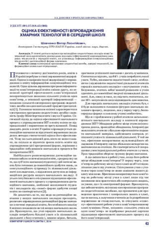 - Шевченко, Віктор Леонтійович (2014) Evaluating the effectiveness of the implementation of cloud technologies in high school Комп’ютер у школі та сім’ї, 1 (113). pp. 43-45. ISSN 2307–9851
