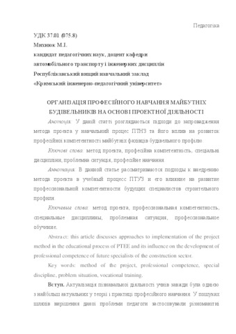 - Михнюк, М.І. (2014) The organization of professional training of the future builders on the basis of project activity Проблеми сучасної педагогічної освіти. Серія: Педагогіка і психологія, 4 (44). pp. 148-153.