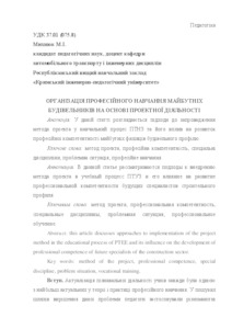 This article discusses approaches to implementation of the project method in the educational process of PTEE and its influence on the development of professional competence of future specialists of the construction sector.