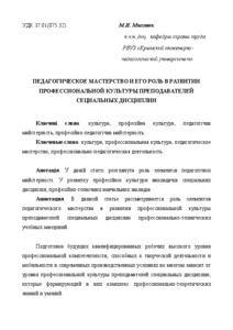 - Михнюк, М.І. (2012) Pedagogical skills and its role in the development of professional culture of teachers of special subjects Ученые записки Крымского инженерно-педагогического унтверситета. Педагогические науки, 3 (34). pp. 102-105.