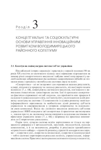 The third section describes the Collegium as a socio-cultural system and the control object, the conceptual framework of innovation and social development Vladimirskogo regional College, proposed path of implementation of the concept of socio-cultural development Vladimirskogo regional College; reflected the concept of profile teaching in the College, program of specialized study in Volodimirska regional College 2007-2011 years.