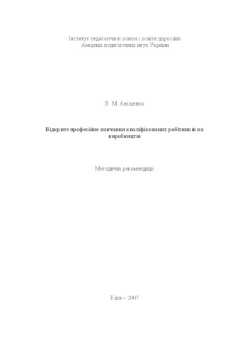 - Аніщенко, В.М. (2007) In-service open vocational training of skilled workers [Teaching Resource]