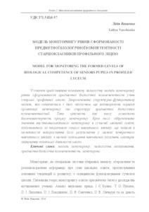 - Ващенко, Л.С. (2016) Model for monitoring the formed levels of biological competence of seniors pupils in profiled lyceum Педагогічна освіта: теорія і практика, 1 (20). pp. 253-260.