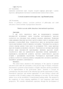 This article draws attention to the inadequacy of the capacity of national education needs adult life personality at the present stage of human civilization. Determined to goodwill certain dynamics of higher education and the possibilities of its implementation in the professional sphere. Attention is focused on contradictions education model of the industrial age and the requirements of today. Generalized experience and modern approaches of some business schools and researchers of the US adult to adapt to the challenges of our time. We offer foreign authors views on the possibilities of transforming teaching adults. The attention to the complexity of issues aligning capabilities of vital competence adult based perspective. We consider international experience through the development of individual components of his intelligence (physical, emotional, spiritual and mental).