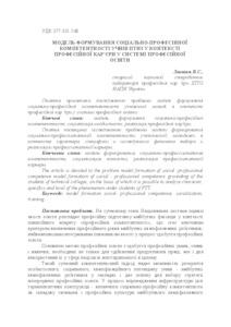 The article is devoted to the problem model formation of social -professional competence model formation of social - professional competence grounding of the students of technical colleges, on the basis of which it is possible to analyze character, specifics and level of the phenomenon under students of PTT.