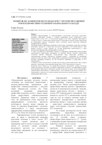 - Ткачук, Г. Е. (2015) Development ICT competence of teachers system methodical work training institutions Науковий вісник Інституту професійно-технічної освіти НАПН України. Професійна педагогіка, 10. ISSN 2223-5752