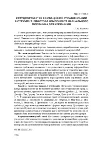 - Калініна, Г. М. (orcid.org/0000-0002-9405-9278) (2015) Crowdsourcing as innovative managerial tool and Content component of a textbook for managers Проблеми сучасного підручника, 1 (15). pp. 230-239.