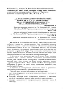 В статті викладено процедуру, норматині показники та стимульний матеріал адаптованих психодіагностичних методик "Шкала досвіду агресивних впливів", "Шкала професійної автономності" та "Шкала професійної мобільності".