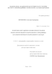- Литвинова, С.Г. (2016) Theoretical and methodological bases of designing cloud-oriented learning environment educational institution Masters thesis, ІІТЗН.