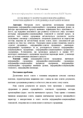 - Соколюк, О.М. (2016) Features of formation of information and communication environment for teaching physics Наукові записки, 1 (9). pp. 166-173. ISSN 978-966-7406-67-7