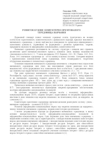 - Соколюк, О.М. (2016) Structure of the development of computer-oriented learning environment In: Звітна наукова конференція Інституту інформаційних технологій і засобів навчання НАПН України . ІІТЗН НАПН України, м. Київ, Україна, pp. 117-118.