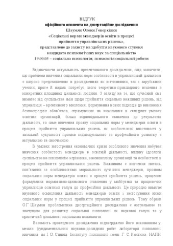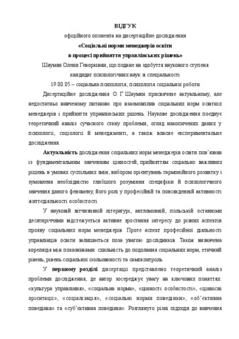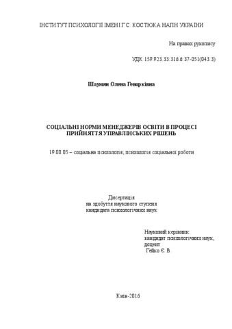 - Шаумян, О.Г. (2016) Social norms of education managers in decision making process Dissertation candidate thesis, Інститут психології імені Г.С. Костюка.