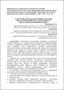 - Максименко, С.Д., Кокун, Олег Матвійович and Тополов, Є.В. (2011) Adaptation of psychodiagnostic methods "Counterproductive Work Behaviors Scale" and "Constructive Resistance Scale" Практична психологія та соціальна робота, 9 (153). pp. 29-34. ISSN 2307-5880
