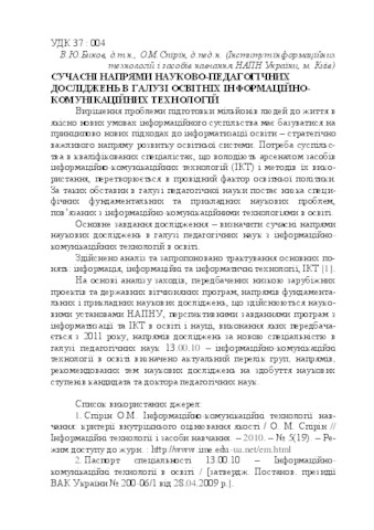 - Спірін, О.М. (orcid.org/0000-0002-9594-6602) and Биков, В.Ю. (2010) Current directions of scientific and pedagogical research in the field of educational information and communication technologies In: "Мультимедійні технології в освіті": наук. – практ. семінар . НАУ, м. Київ, Україна, p. 10.