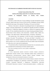 - Лотоцька, Ю.М. (2013) Psychological barriers for implementation of changes Електронний журнал Technologies of intellect development.