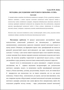 | Keywords: | психологія життєвого успіху, псевдосценарій, модель успіху, розумова модель життєвих виборів, методика дослідження інтелектуальної моделі |