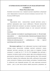 - Лотоцька, Ю.М. (2011) Історико-психологічний аналіз моделей життєвої успішності Актуальні проблеми психології. Наукові записки: зб.наук.праць. (39). pp. 170-182.