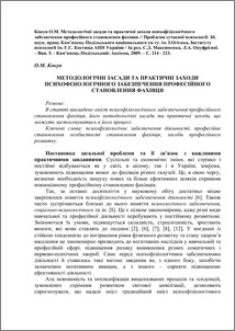 | Keywords: | психофізіологічне забезпечення діяльності, професійне становлення особистості, становлення фахівця, засоби професійного розвитку |