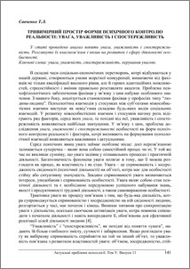 - Савченко, Тетяна Леонідівна (2011) Тривимірний простір форми психічного контролю реальності: увага, уважливість і спостережливість Актуальні проблеми психології: Збірник наукових праць Інституту психології імені Г.С. Костюка НАПН України. – Том. V: Психофізіологія. Психологія праці. Експериментальна психологія. (11). pp. 141-145. ISSN 2072-4772