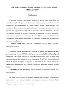 - Копилов, Сергій Олегович (orcid.org/0000-0003-1984-4468) (2011) Психологические аспекты творческого наследия М.М.Бахтина Вопросы психологии, 3. pp. 22-28.