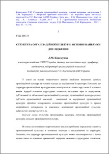 - Карамушка, Л.М. (2013) The structure of organizational culture: key research trends Актуальні проблеми психології: зб. наукових праць Інституту психології імені Г.С. Костюка НАПН України – Т. І: Організаційна психологія. Економічна психологія. Соціальна психологія (37). pp. 3-6. ISSN 2072-4772