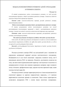 In the article, the model of psychomotor development is revealed as a tool of consideration of psychomotor impairments of children who suffer from autistic spectrum disorder, as well as an approach to psycho-pedagogical intervention.