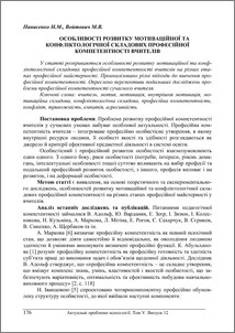 У статті розкриваються особливості розвитку мотиваційної та конфліктологічної складових професійної компетентності вчителів на різних етапах професійної майстерності. Проаналізовано різні підходи до вивчення професійної компетентності. Окреслено перспективи подальших досліджень проблеми професійної компетентності сучасного вчителя.